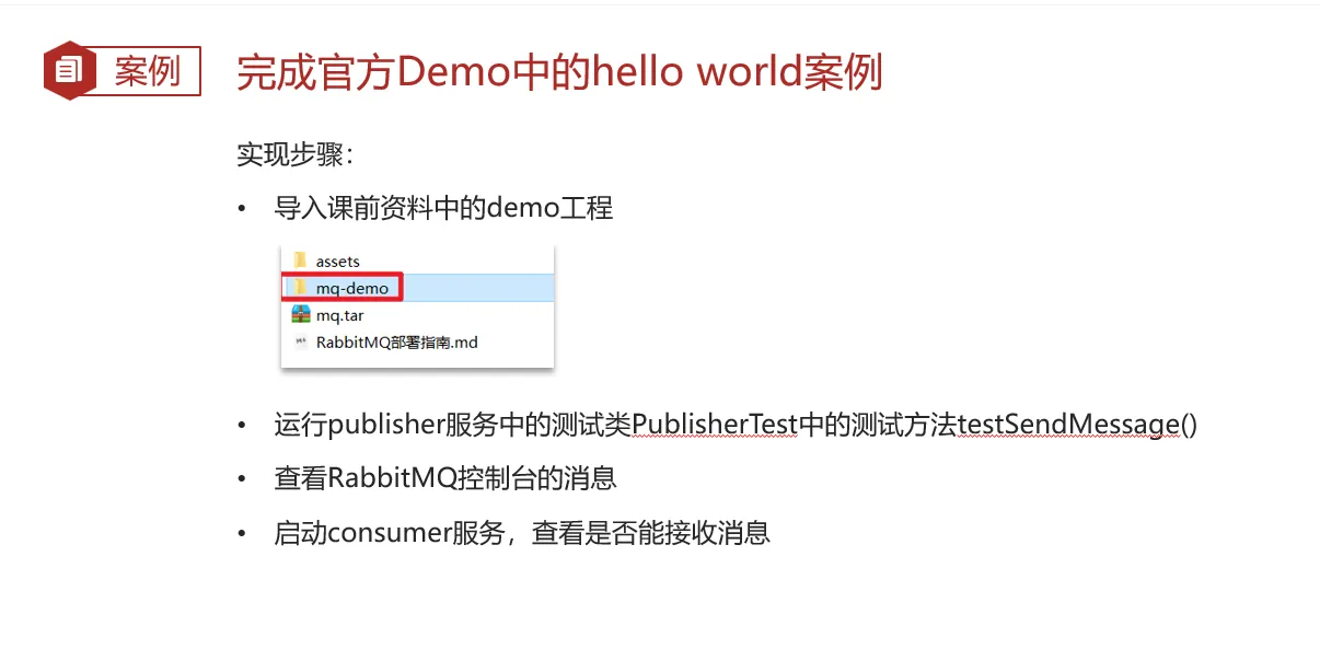 官方的HelloWorld是基于最基础的消息队列模型来实现的,只包括三个角色: