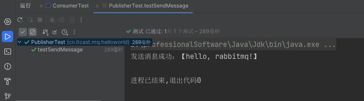 3.在publisher中编写测试方法,向itcast. topic发送消息
