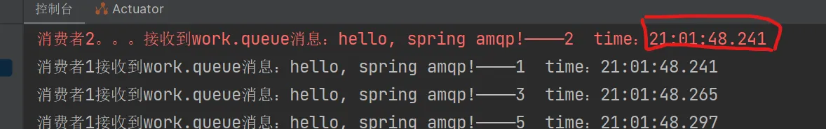 2.在consumer服务中,编写两个消费者方法,分别监听topic.queue1和topic.queue2