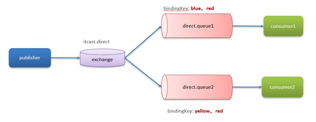 rabbitTemplate.convertAndSend(exchangeName, "red", "hello, yellow direct message!");