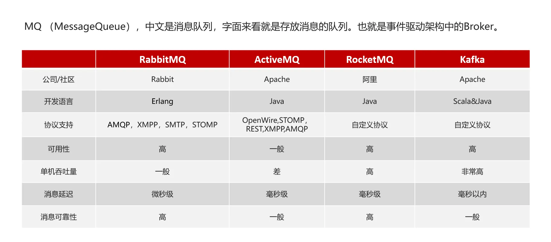不同MQ对比