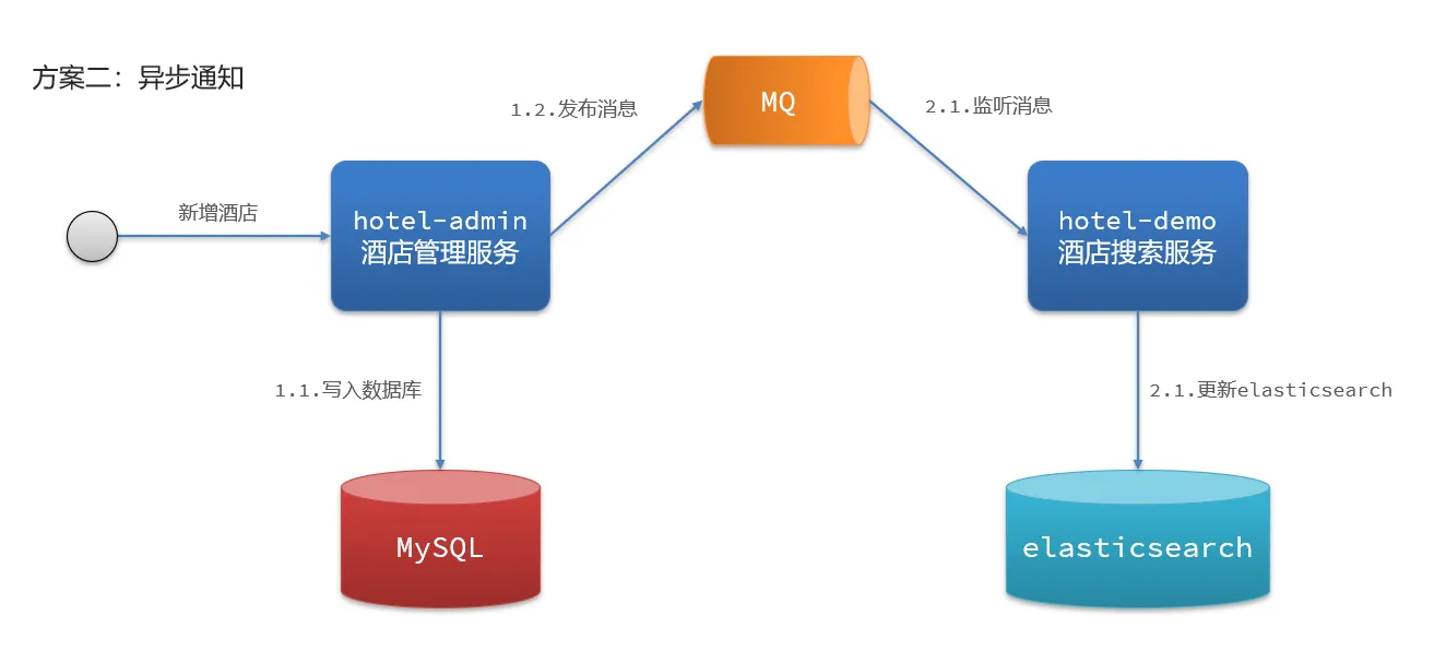 elasticsearch中的酒店数据来自于mysql数据库,因此mysql数据发生改变时,elasticsearch也必须跟着改变,这个就是elasticsearch与mysql之间的数据同步。