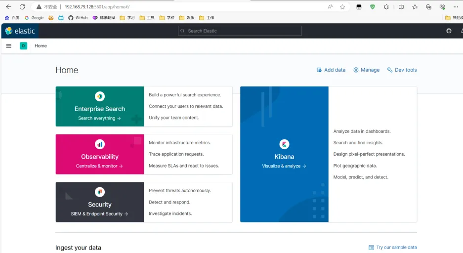 此时,在浏览器输入地址访问:http://虚拟机ip:5601,即可看到结果
