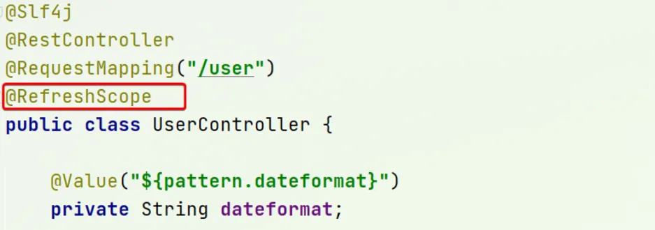 我们在user-service中将pattern.dateformat这个属性注入到UserController中做测试: