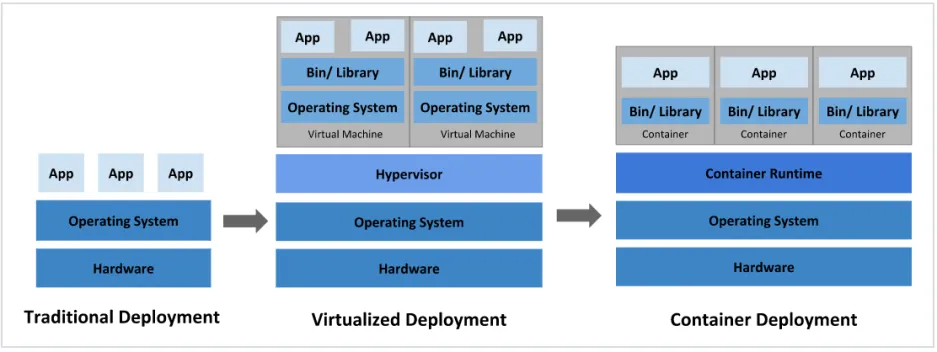 - 虚拟化部署:可以在一台物理机上运行多个虚拟机,每个虚拟机都是独立的一个环境