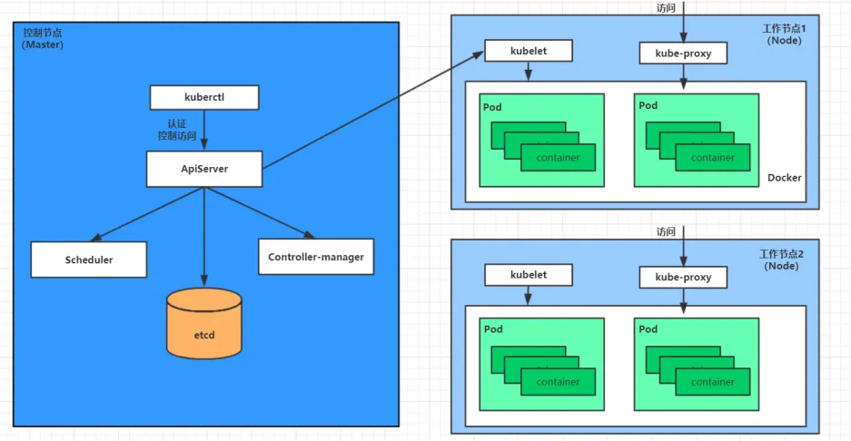 一个kubernetes集群主要是由控制节点(master)、工作节点(node)构成,每个节点上都会安装不同的组件。